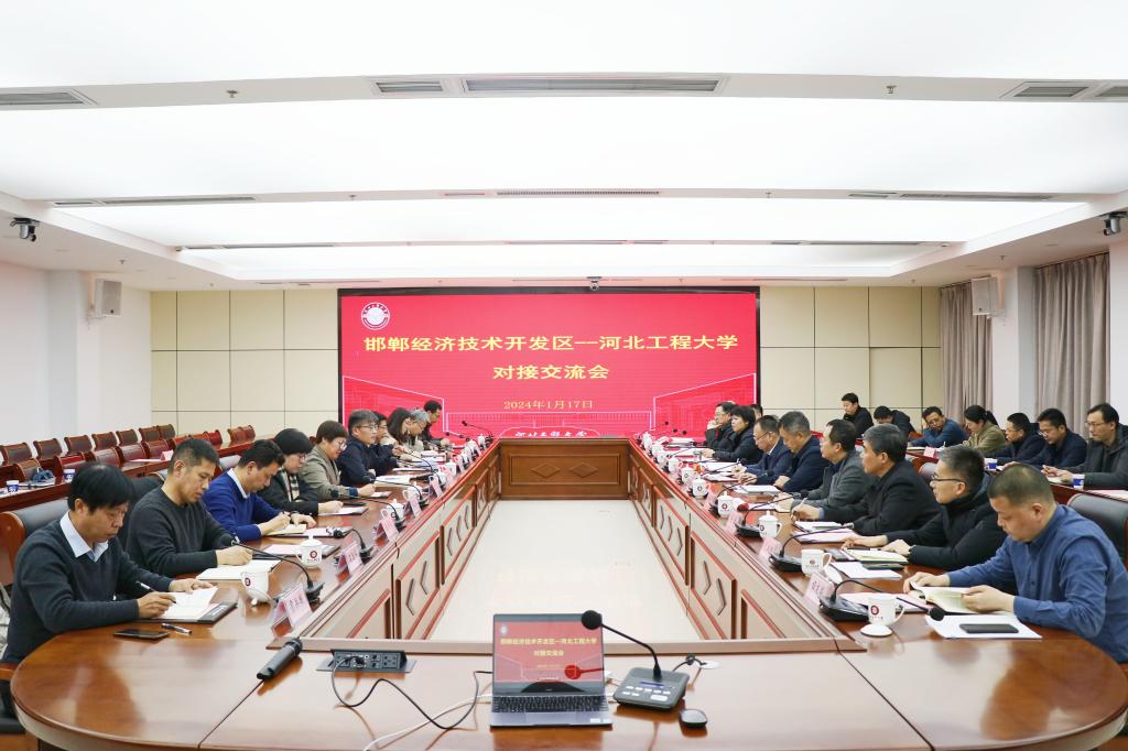 于树江对经开区长期以来对学校的支持表示感谢,并介绍了学校基本情况和科研进展。他表示,学校近年来不断加大科技研发力度,形成了一批高质量科技成果。特别是倪岳峰书记、王正谱省长去年来校调研以来,学校主动适应行业和地方双重需求,强化办学特色,加快成果转化,推动各项事业高质量发展。学校和经开区有着长期良好的合作基础,将聚焦邯郸市及经开区发展方向,把科研优势同产业发展紧密结合起来,着力推动智慧水利、良种繁育、新材料、新能源等领域科研成果在经开区转化落地,赋能区域经济高质量发展,打造校地合作新样板。