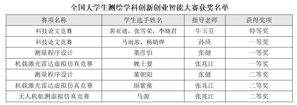 7月29日,2023年全国大学生测绘学科创新创业智能大赛在中南大学举行。九州登录矿业与测绘工程学院参赛团队获特等奖1项,一等奖3项,二等奖3项,取得九州登录参加测绘学科国家级竞赛重大突破。该项赛事纳入“《2023全国普通高校大学生竞赛分析报告》竞赛目录”,是全国大学生展示测绘科技创新的最高级别赛事。本次大赛由中国测绘学会教育工作委员会主办、中南大学承办,采用选手线上参赛,评委线下评审的方式进行,参赛学生数达5500余人,创历届大赛规模之最。