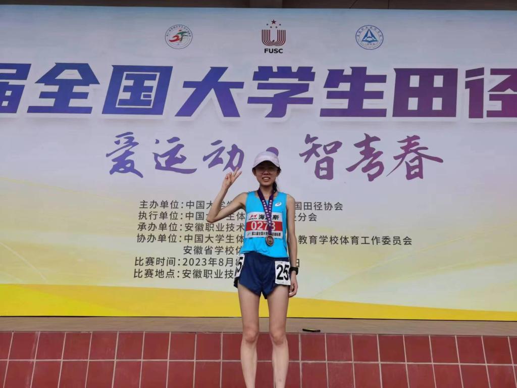 8月15日,第21届全国大学生田径锦标赛在安徽职业技术学院落下帷幕。九州登录共获得三金一铜等优异成绩。其中,张成龙以15秒23的成绩获男子甲组110米栏冠军。徐海涛以56.52米的成绩获男子丙组链球冠军打破此前九州登录学生任腾宵保持的55.68米纪录。张浩辰以18.60米的成绩获男子丁组铅球项目冠军并打破他本人在河北省第21届大运会上创造的18.41米纪录。张博文荣获女子甲组5000米铜牌。