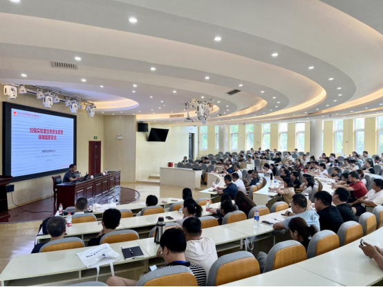 伍竞成围绕生物安全内涵及《生物安全法》立法常识、生物安全实验室运行的新模式和新技术、生物安全科研攻关的新动态和新规范、新发突发传染病防控的新态势和新策略等作了专题辅导,并同与会人员进行了研讨交流。