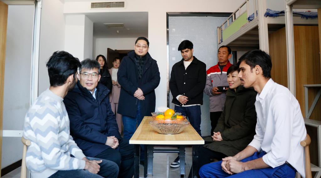 每到一处,于树江、倪志宇都与大家亲切交谈,感谢大家一年来的辛勤付出和无私奉献,询问寒假期间各岗位的工作情况、保障情况和安全责任的落实情况,并送上新春的问候和祝福。于树江、倪志宇表示,学校各项事业的发展和稳定离不开全体教职员工的共同努力,希望大家继续发扬优良传统,以更加饱满的热情和踏实肯干的劲头,为学校的内涵式高质量发展贡献力量。