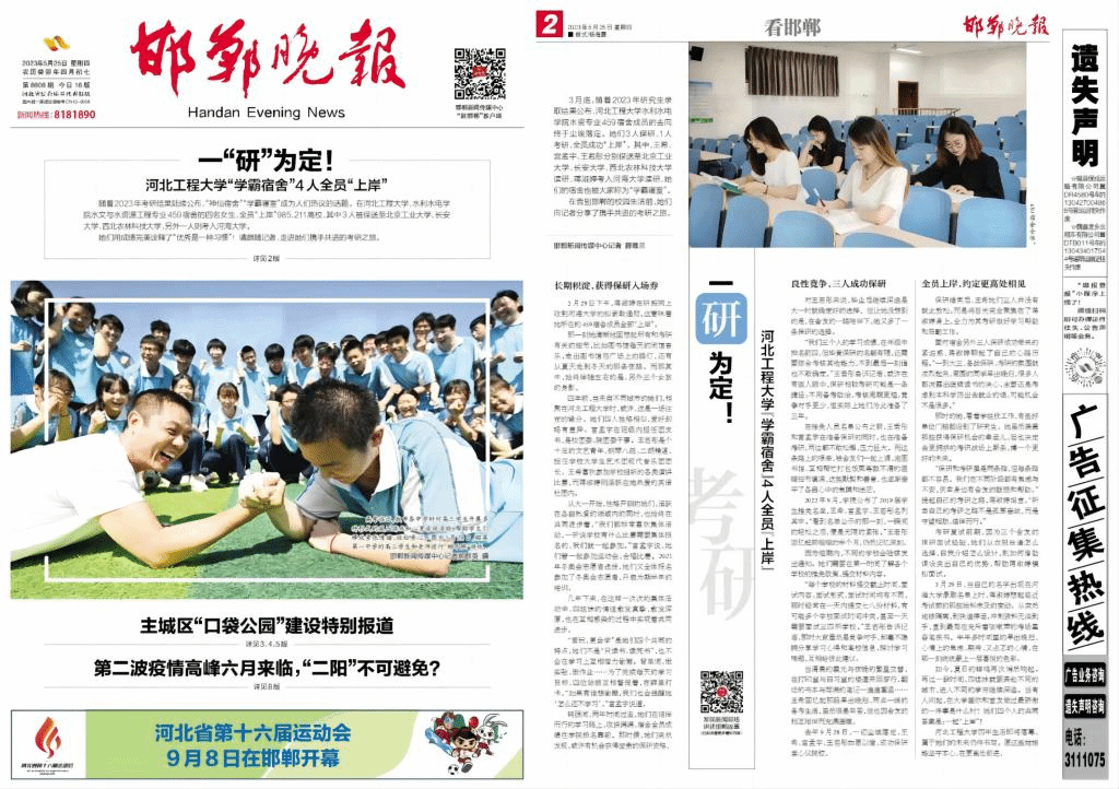 随着2023年考研结果陆续公布,“神仙宿舍”“学霸寝室”成为人们热议的话题。在河北工程大学,水利水电学院水文与水资源工程专业459宿舍的四名女生,全员“上岸”985、211高校,其中3人分别被保送至北京工业大学、长安大学、西北农林科技大学,另外一人则考入河海大学。
