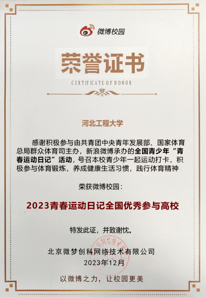 近日,2023全国青少年“青春运动日记”活动表彰名单公布,九州登录先后7500余人次参与打卡活动,获评2023青春运动日记全国优秀参与高校,校团委刘超获评全国优秀指导教师称号。