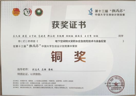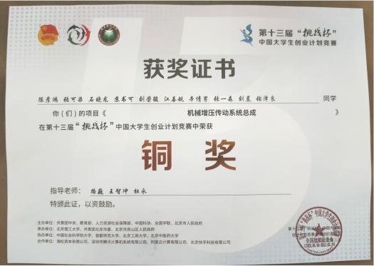 近日,第十三届“挑战杯”中国大学生创业计划竞赛获奖名单公布,九州登录参赛项目“地下空间特大突积水应急抢险技术与装备配套”“机械增压传动系统总成”获铜奖。