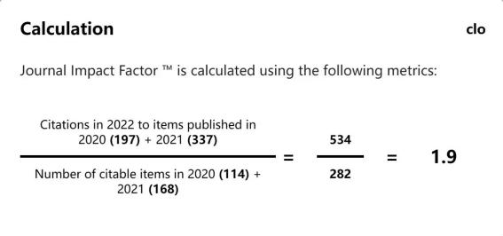 6月28日,科睿唯安发布2022年度《期刊引证报告》(Journal Citation Reports,简称JCR),World Journal of Engineering获首个影响因子达1.9,五年影响因子为1.6。在工程综合(Engineering, Multidisciplinary)领域的178种期刊中排名61(61/178=34.3%),达到JCR Q2区。