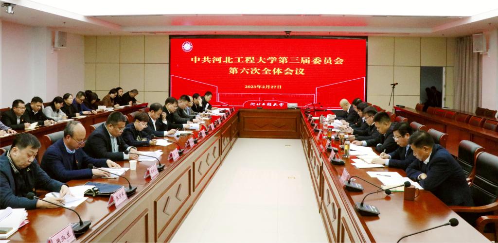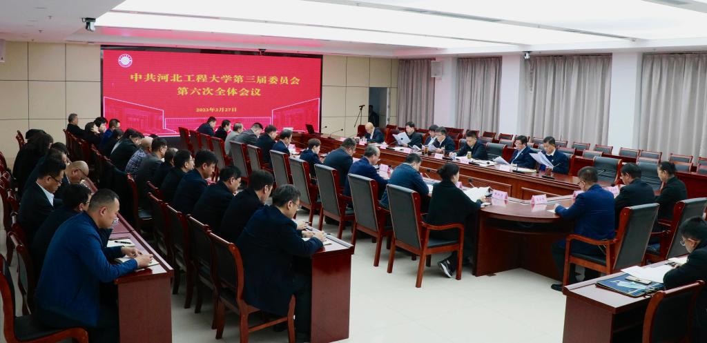 2月27日下午,中共河北工程大学第三届委员会召开第六次全体会议。校党委委员21人出席,校纪委委员和各部门、单位主要负责人列席会议。