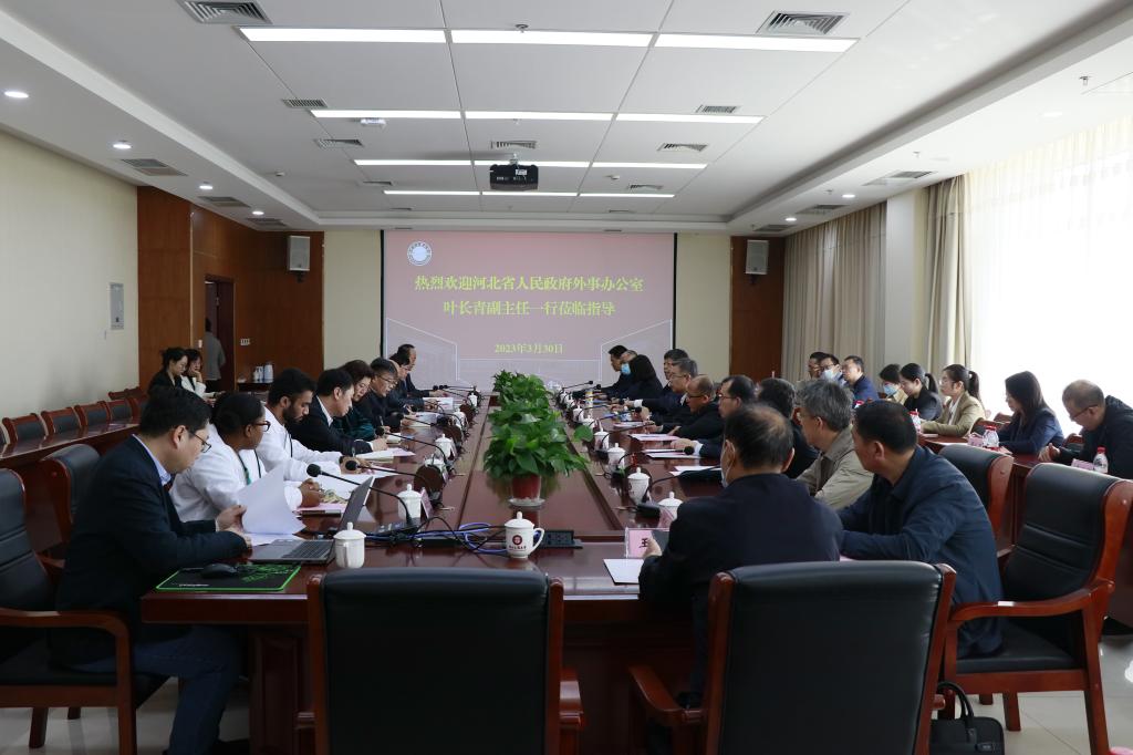 3月30日下午,河北省人民政府外事办公室副主任叶长青一行来校调研外籍留学生服务管理工作。校党委副书记、校长于树江,校党委常委、副校长刘心出席座谈会。