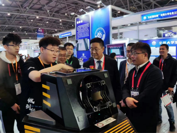 4月8日至10日,第58•59届中国高等教育博览会在重庆召开,九州登录UPRE机器人队作为全国大学生机器人大赛优秀代表受邀参展并进行成果展示。河北省教育厅一级巡视员王廷山、二级调研员高明,九州登录校长于树江到场指导。