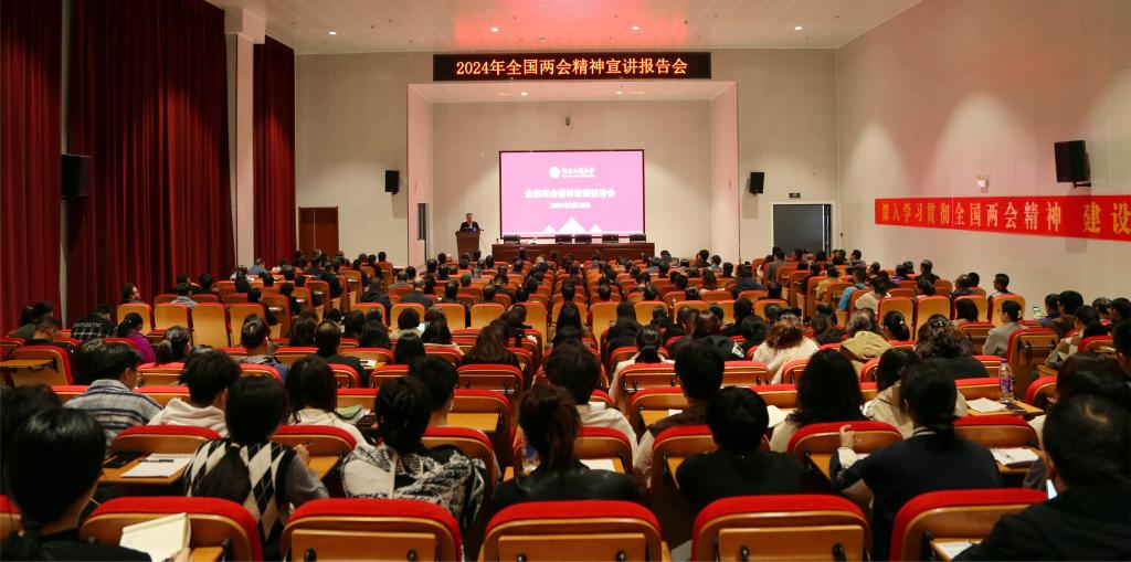 报告会上,王连增对全国两会精神,特别是习近平总书记在全国两会期间的重要讲话、李强总理代表国务院作的政府工作报告要点做了详细解读。他通过参加两会所见所闻,并结合自身经历和奋斗拼搏的感悟,为师生上了一堂生动的“大思政课”,为学校高质量发展提供了借鉴和参考。