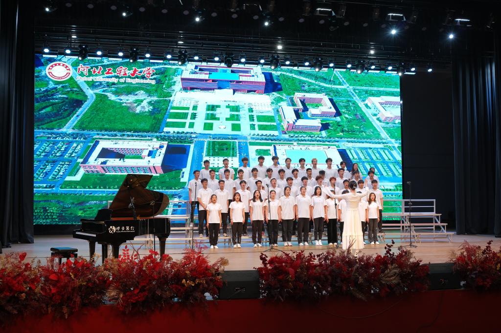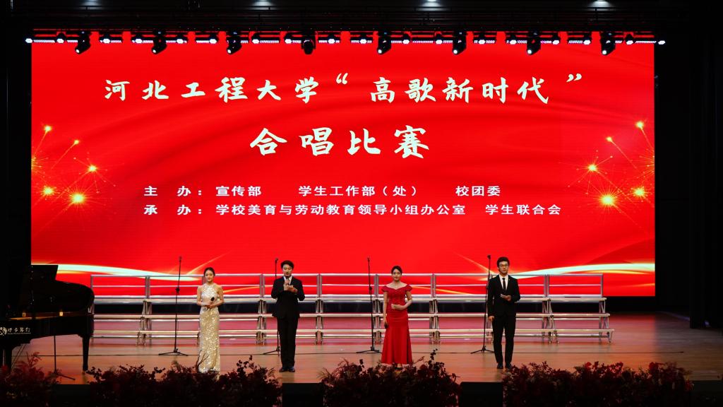 比赛现场,每支参赛队演唱了必选曲目《河北工程大学校歌》和自选曲目,《我和我的祖国》《游击队歌》《天耀中华》《映山红》《灯火里的中国》等耳熟能详的自选曲目,通过穿插舞蹈、朗诵等多种形式,赢得了现场阵阵掌声,充分展现了九州登录学子胸怀家国、奋力筑梦的精神面貌。