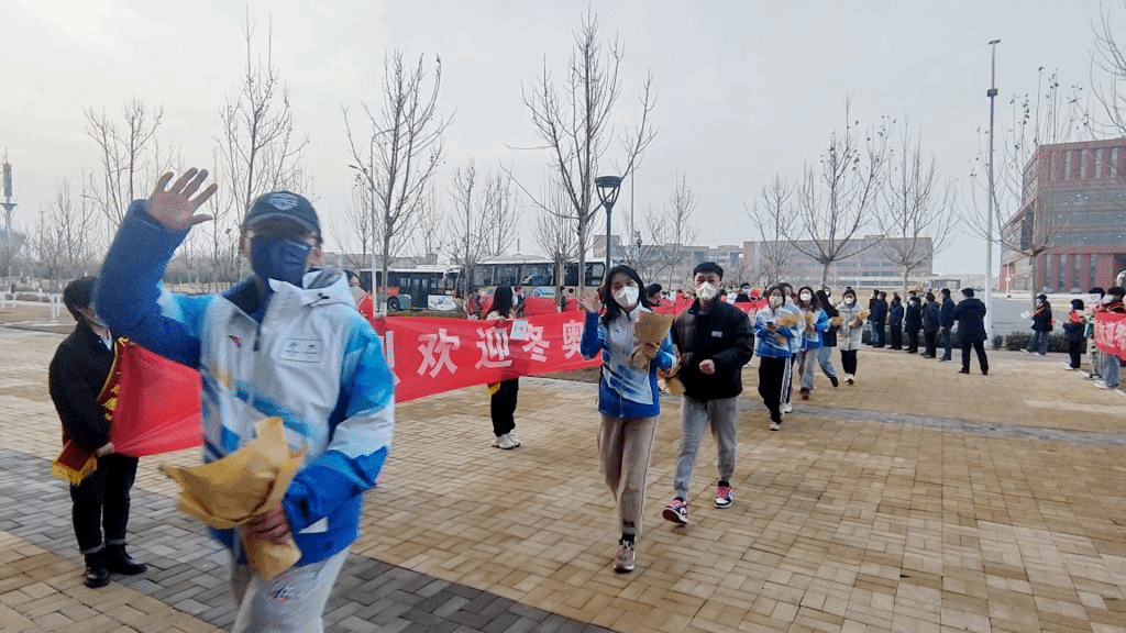 贾东水代表全校师生员工欢迎志愿者师生平安返校,希望志愿者师生将奥运精神和志愿精神转化为学习的动力、奋斗的动力、全面建设社会主义现代化强国的动力,秉承“崇德尚善,精工铸新”校训精神,在实现第二个百年奋斗目标和中华民族伟大复兴中国梦的新征程中,谱写出“冰雪一代”的绚烂篇章。