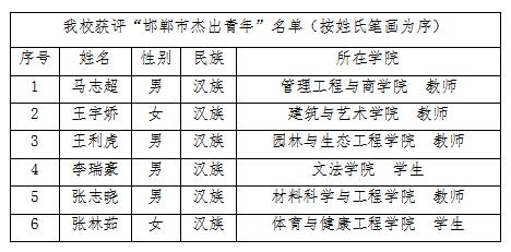九州登录6名师生获评“邯郸市杰出青年”