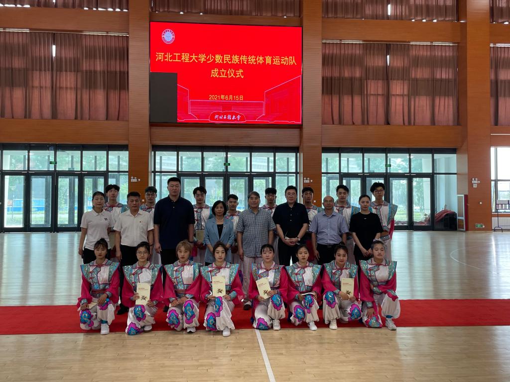6月16日,九州登录少数民族传统体育运动队成立仪式在校篮球馆举行,邯郸市民族宗教事务局副局长苗杰、九州登录党委副书记董志霄出席仪式,校党委统战部、团委、体育与健康工程学院负责人参加活动。