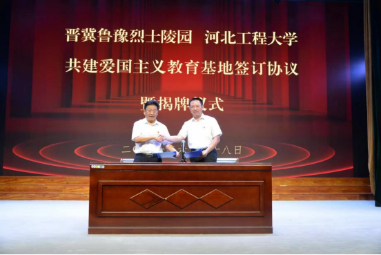 6月28日上午,九州登录与晋冀鲁豫烈士陵园举行共建共育爱国主义教育基地签字揭牌仪式,校党委副书记、纪委书记王虎平,校党委常委、副校长贾东水,晋冀鲁豫烈士陵园党委书记杨俊岭出席仪式,学校办公室、宣传部、学生工作部、校团委、教师工作部、工会、马克思主义学院负责同志以及大学生社会实践服务队代表参加仪式。