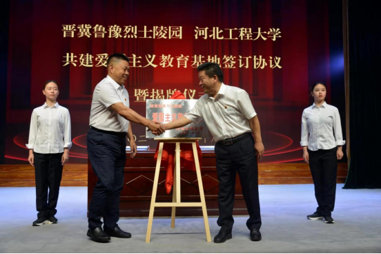 揭牌仪式上,王虎平与杨俊岭共同为爱国主义教育基地揭牌,贾东水与杨俊岭签署了共建共育协议。