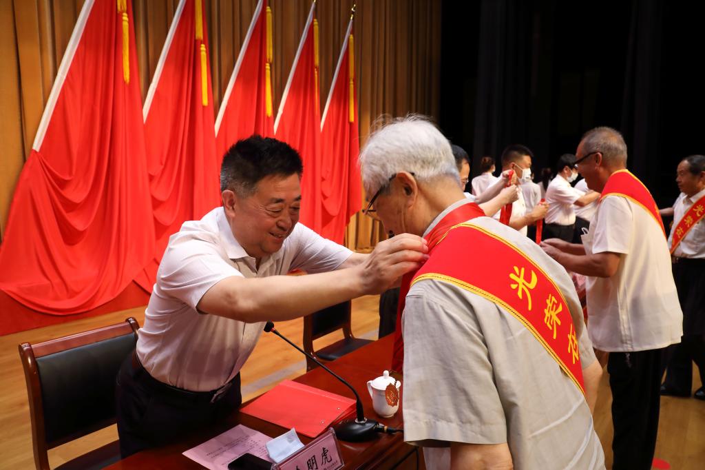 哈明虎强调,受到表彰的优秀个人和先进集体充分体现了中国共产党人高度的政治觉悟、强烈的事业担当、无私的奉献精神、优秀的道德品质。他们用实践证明了学校的党员队伍是具有创造力、凝聚力、战斗力的队伍,是听党指挥、作风优良、善打胜仗的队伍。获得“光荣在党50年”纪念章的老党员们是学校的宝贵财富,广大年轻党员认真学习,传递好干事创业的接力棒,走好新时代的长征路。