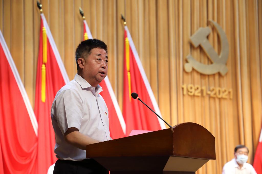 哈明虎代表学校党委向受到表彰的的优秀个人和先进集体致以诚挚祝贺,向获得“光荣在党50年”纪念章的老党员致以崇高敬意,向为学校事业发展拼搏奉献的全体党员致以衷心的感谢和节日的问候。