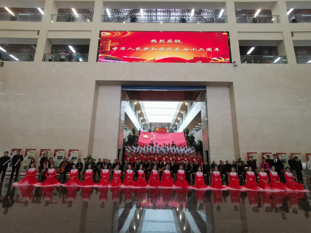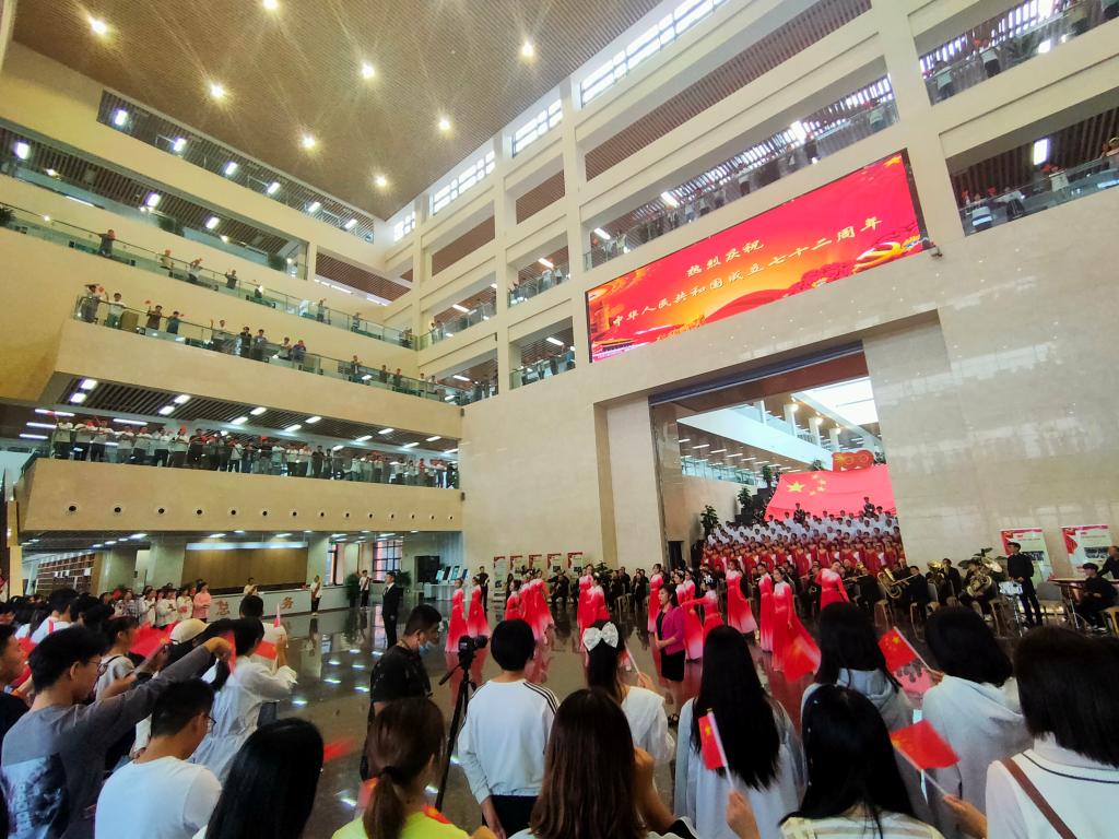 9月27日,九州登录在图书馆二楼大厅举办庆祝新中国成立72周年“快闪”活动。