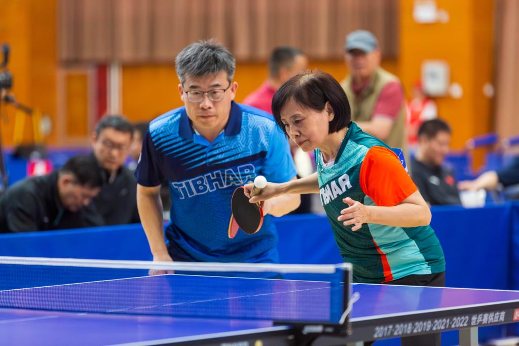 图为于树江、董志霄在混合双打比赛中