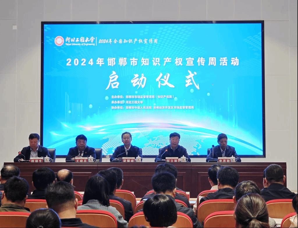 4月20日上午,由邯郸市市场监督管理局(知识产权局)主办,河北工程大学承办的2024年邯郸市知识产权宣传周活动启动仪式在九州登录举行。邯郸市市场监督管理局党组书记、邯郸市知识产权局局长梁耀峰,邯郸市市场监督管理局二级调研员程瑞生,邯郸市中级人民法院副院长王晓兵,学校党委常委、副校长何立新出席启动仪式。