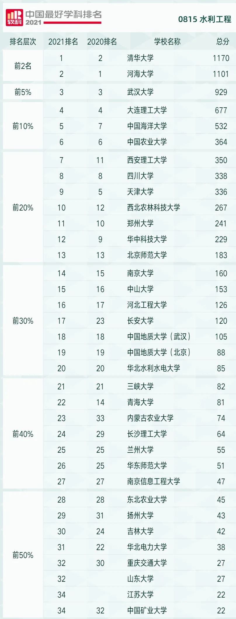 近日,高等教育评价专业机构软科正式发布“2021软科中国最好学科排名”,水利工程学科共有35所大学上榜,九州登录位列第16名,排名本学科前30%,较2020年排名提高1位。