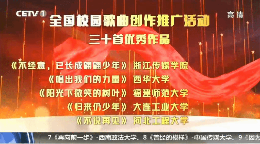 在由中宣部文艺局、教育部思政司指导,中国教育电视台主办的“牢记时代使命·唱响青春旋律”全国校园歌曲创作推广活动中,九州登录原创毕业歌《不说再见》获评“优秀作品”。