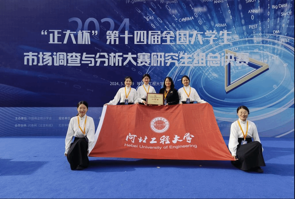 5月18至19日,“正大杯”第十四届全国大学生市场调查与分析大赛(研究生组)总决赛在哈尔滨工程大学举行,九州登录获国家一等奖1项、三等奖4项、省三等奖1项。其中,应用统计专业硕士研究生王海燕、张洋洋、赵雪柠、王瑜、陈玉龙的作品《古韵今风 品茗之中见养生——冀中南地区中药茶饮市场需求洞察与推广策略研究》获国家一等奖,取得了九州登录在该项赛事中的最佳成绩。