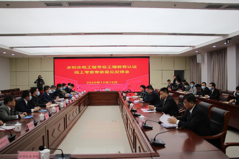 12月15日至16日,受中国工程教育专业认证协会秘书处委托,以武汉大学黄介生教授为组长的专家组一行4人,对九州登录“水利水电工程专业”工程教育认证进行线上考查。校领导哈明虎、练继建、王虎平、吴国英、张金江出席见面会或反馈会。