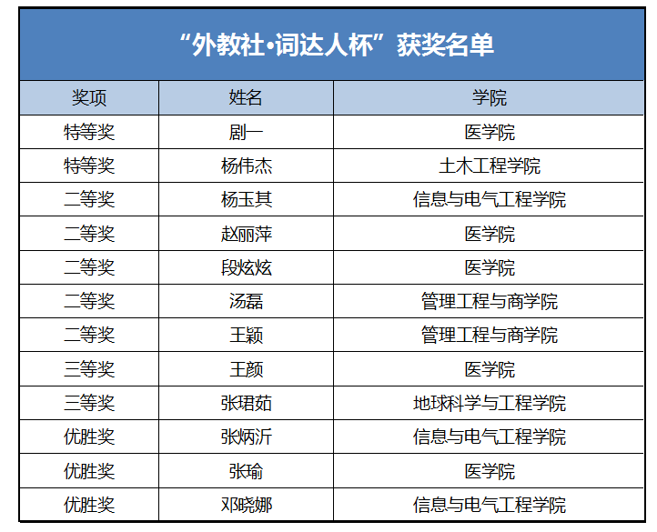 近日,河北省“外教社·词达人杯”高校大学生英语词汇大赛公布获奖名单,九州登录派出20名学生参加决赛,获特等奖2项、二等奖5项、三等奖2项、优胜奖3项。