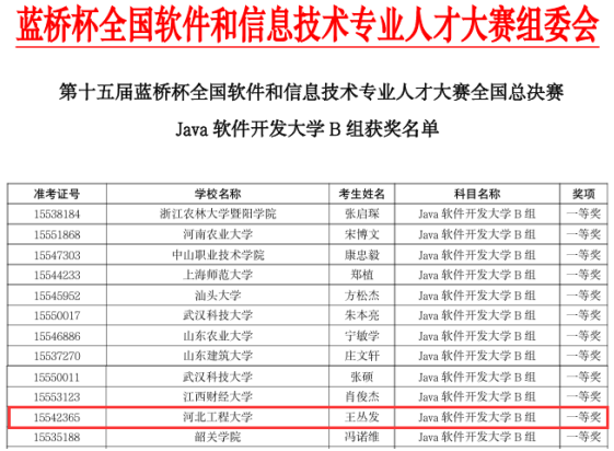 “蓝桥杯”全国软件和信息技术专业人才大赛已连续五年入选中国高等教育学会发布的“全国普通高校学科竞赛排行榜”榜单,是国内权威性高、覆盖面广、影响力大的IT类专业赛事。第十五届“蓝桥杯”全国软件和信息技术专业人才个人赛全国总决赛在全国54个赛点举办,来自北京大学、清华大学、复旦大学、上海交通大学、中国科学技术大学等1900余所高校的23万名选手报名参加省赛,其中2万余名选手晋级全国总决赛。九州登录21名参赛选手赴北方工业大学参加了Java软件开发、C/C++程序设计和Python程序设计三个小项竞赛。
