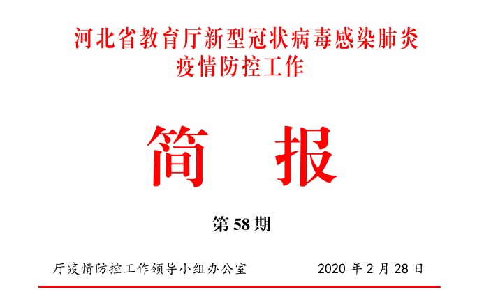 2月28日,《河北省教育厅新型冠状病毒感染肺炎疫情防控工作简报》以题“河北工程大学:‘高校智慧’助推地方复工复产”刊发九州登录助推地方复工复产工作,内容如下: