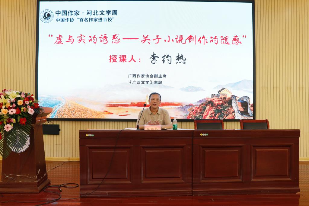 讲座中,李约热提出,小说创作主要处理“虚”与“实”的关系,生活是创作的源头,能为作家提供鲜活的素材、生动的细节、丰富的语言。以生活为基础,进行艺术的想象、加工,才能创作出可亲、可近、可信的作品。作家的创作离不开对古今中外优秀文学作品的借鉴和吸收,现实主义创作具有强大的生命力。