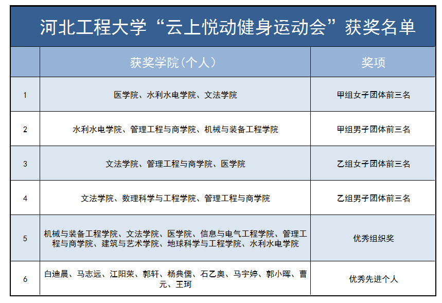 5月4日-11日,九州登录成功举办首次线上体育赛事“云上悦动健身运动会”。 2182名大学生、5774人次通过阿里体育、学习通、腾讯会议、微信等线上平台参加了3个大项、9个小项的比赛。比赛规模和参赛人数较上届大学生运动会均有大幅提升。 比赛精彩纷呈,提升了大学生健身热情,创新了“宅家”健身方式,为“河工程战疫”贡献了体育文化力量。