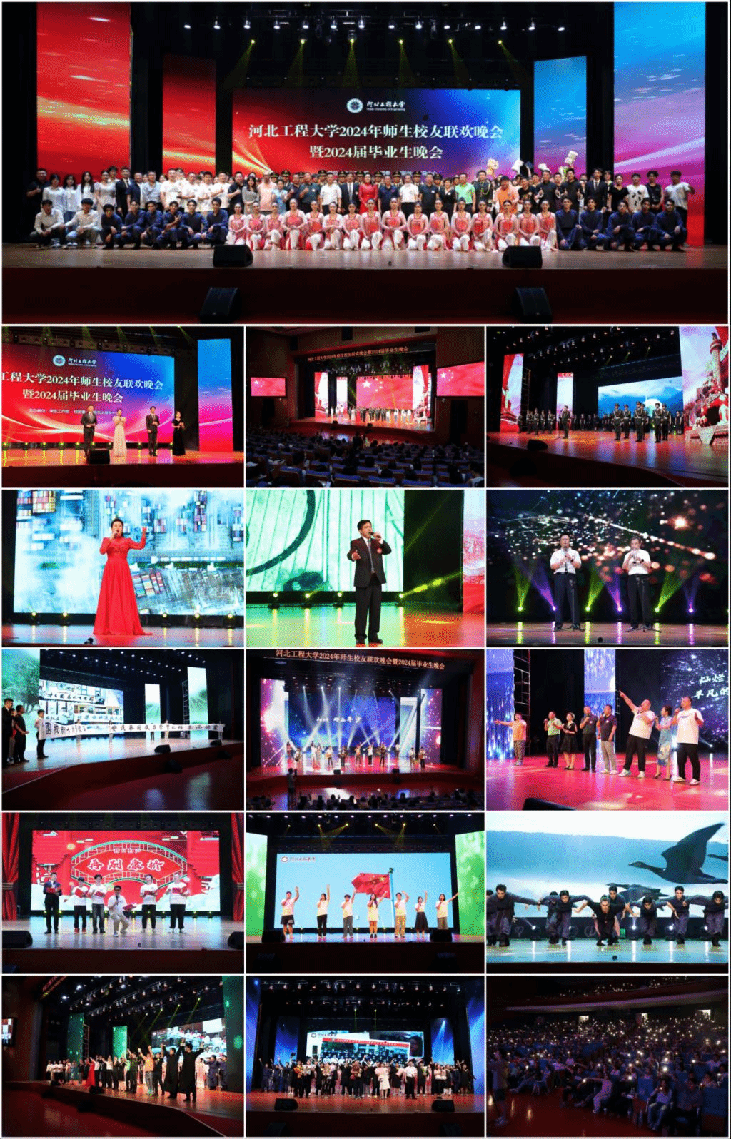 晚会以“一脉相承同向同行·新征程高质量发展”为主题,参与演出的包括2024届毕业生及辅导员、在校大学生艺术团体成员,来自北京、天津、海南等15个省、直辖市的42名校友,参演校友中涵盖了学校及其前身1980级至今各时期毕业生。