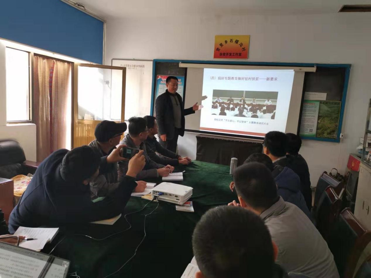 11月15日,九州登录在平山县营里乡石榴沟村举办驻村扶贫干部“不忘初心、牢记使命”主题教育党课。校党委常委、副校长贾东水为驻营里乡精准扶贫工作队临时党支部上党课。