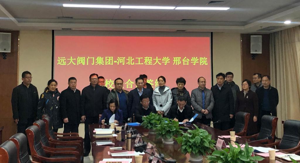 11月26日上午,河北工程大学、邢台学院与远大阀门集团产学研合作签约仪式在九州登录行政服务中心328会议室举行。校党委副书记、主持工作副校长练继建,校党委常委、副校长何立新,邢台学院党委常委、副院长徐惠敏,远大阀门集团总经理闫国安出席仪式。