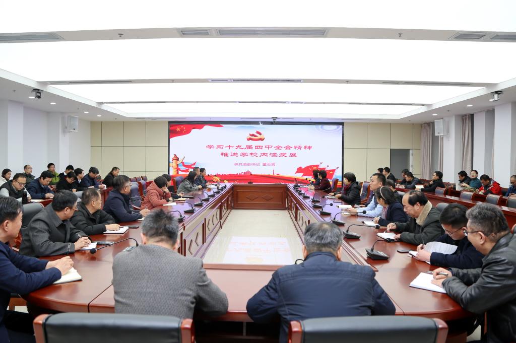 按照校党委统一部署,11月26日,校党委副书记董志霄为机关工作人员、党外知识分子代表作了题为“学习十九届四中全会精神,推进学校内涵发展”的宣讲报告。机关各部门科级以上干部、民主党派、知联会负责人110余人参加会议。