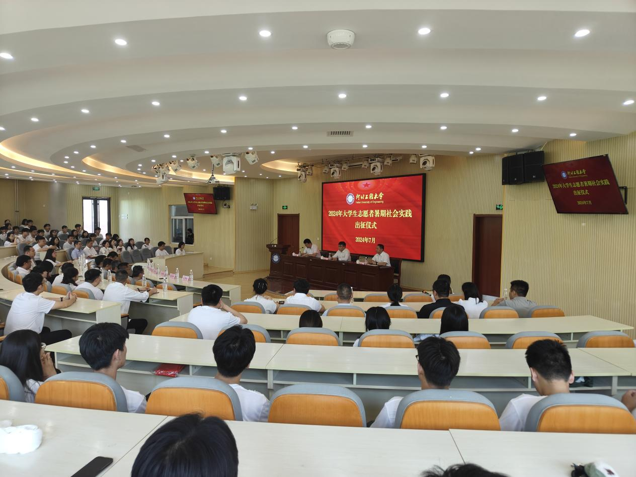 仪式宣读了《2024年河北工程大学暑期社会实践活动方案》。社会实践团队指导教师代表、学生代表先后发言。学校相关部门负责人、各学院党委副书记、各二级团组织书记、各社会实践活动重点团队师生代表200余人参加仪式。