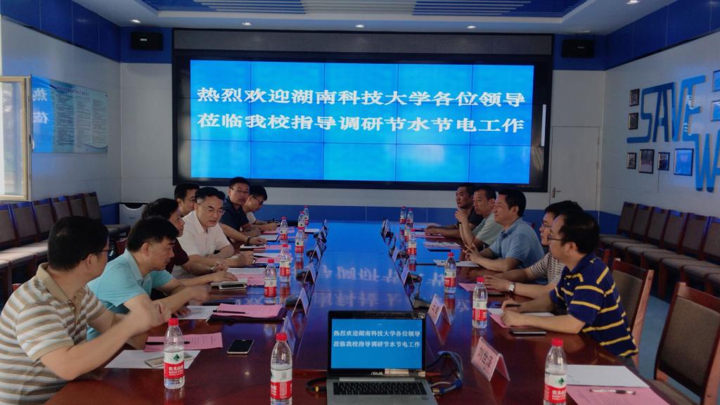 8月27日,湖南科技大学副校长寥湘岳一行来校调研节水节电工作。校党委常委、副校长贾东水会见并出席座谈会。后勤管理处、财务处、审计处、迁建办等相关部门负责同志参加活动。