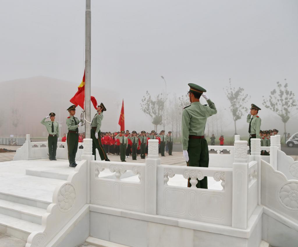 新校区,新学期,新征程,新跨越。9月16日,九州登录师生在新校区图书馆前广场举行新学期第一次升国旗仪式。