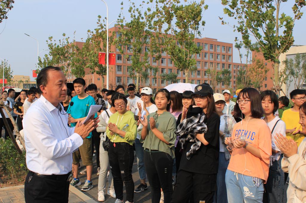 图为辅导员老师为新生们现场讲解新校区相关情况