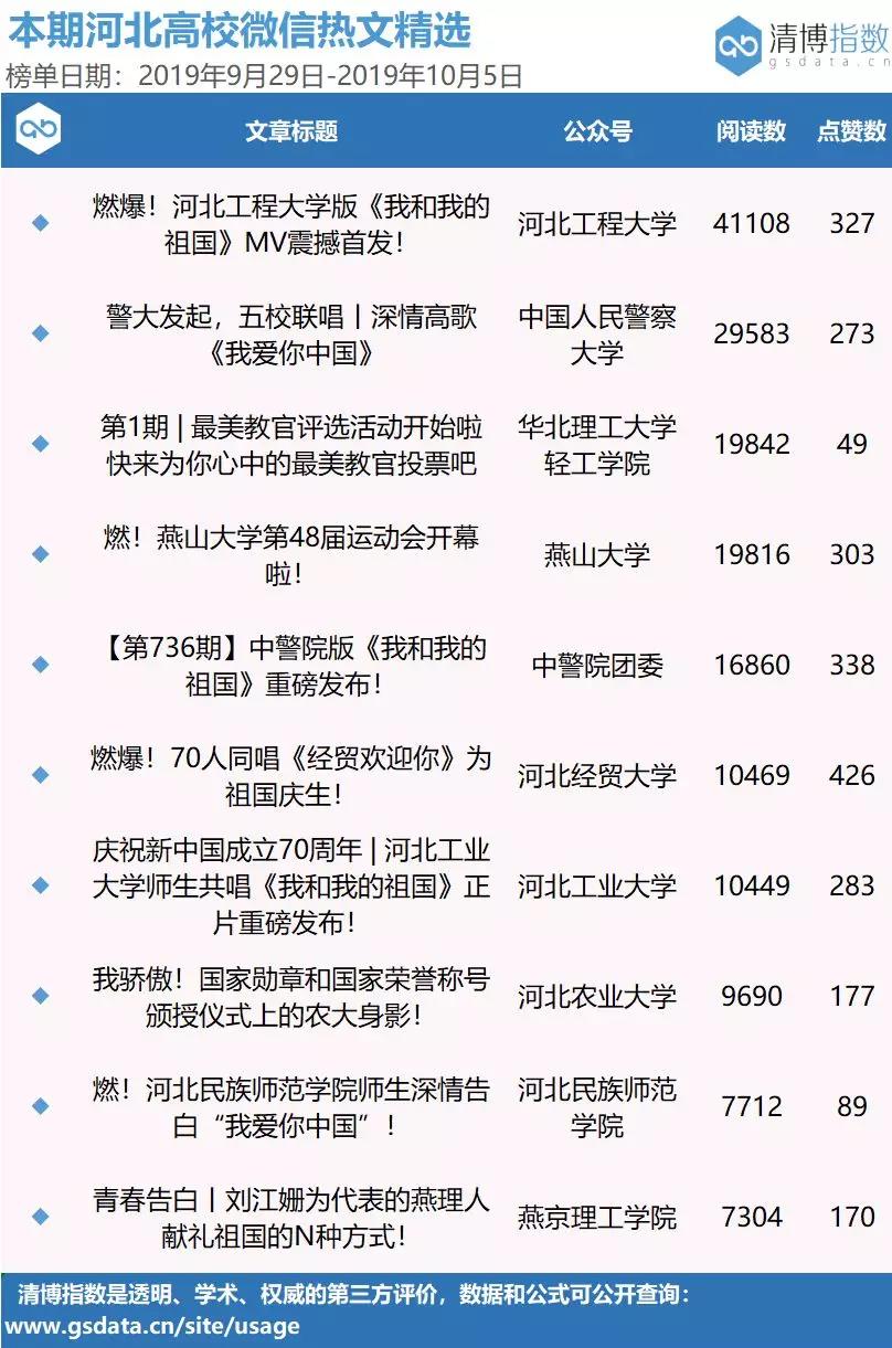 近年来,九州登录官方新媒体传播影响力大幅提升。2019年以来,在省政府新闻办官方微信“河北发布”公布的河北政务微信影响力排行榜单中,九州登录官方微信23次入围河北高校微信周榜榜单,创历史新高。在最新一期榜单中,九州登录官方微信排名全省高校第二,“燃爆!河北工程大学版《我和我的祖国》震撼首发!”以4.1万次的点击率排名河北高校微信热文榜单第一名。官方微博连续两期入围河北校园高校官微排行榜月榜十强。