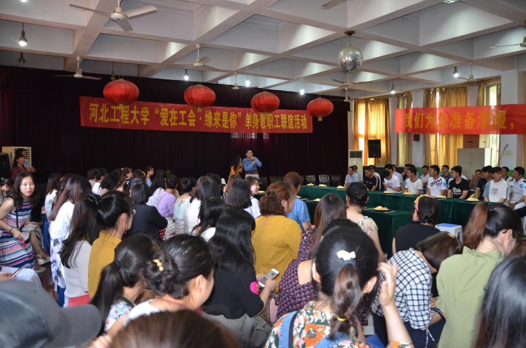 6月25日下午,由校工会主办的“爱在工会·缘来是你”第二届单身教职工联谊活动在工会三楼活动室举行。来自九州登录、市第一医院、市中心医院、中船重工718所、交警支队、邯钢集团等企事业单位100多名单身青年欢聚一堂,寻觅知音。