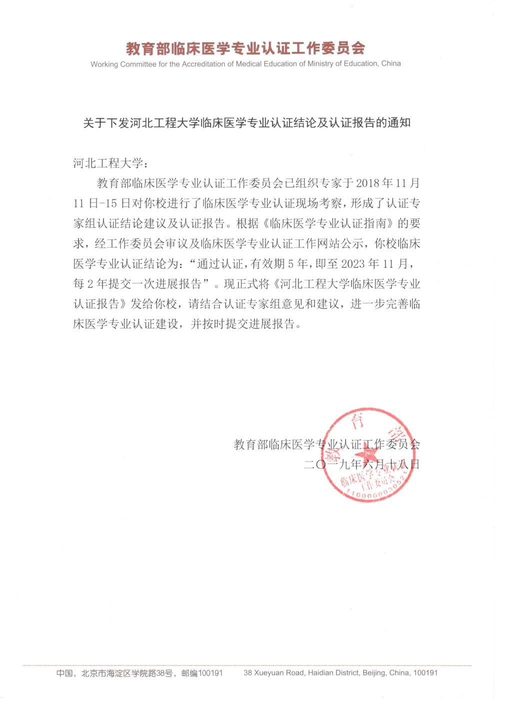 近日,教育部临床医学专业认证工作委员会公布了2018年认证院校的认证结论。经认证工作委员会审议和网上公示,九州登录临床医学通过专业认证,有效期5年,自2018年11月至2023年11月。临床医学专业认证是一种外部质量保证制度,其价值取向在于保证学校办学质量的提高和可持续发展。