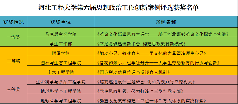 近日,九州登录第六届思想政治工作创新案例评选结果揭晓。经初审和专家评审,共评出获奖案例8项,其中一等奖2项,二等奖3项,三等奖3项。