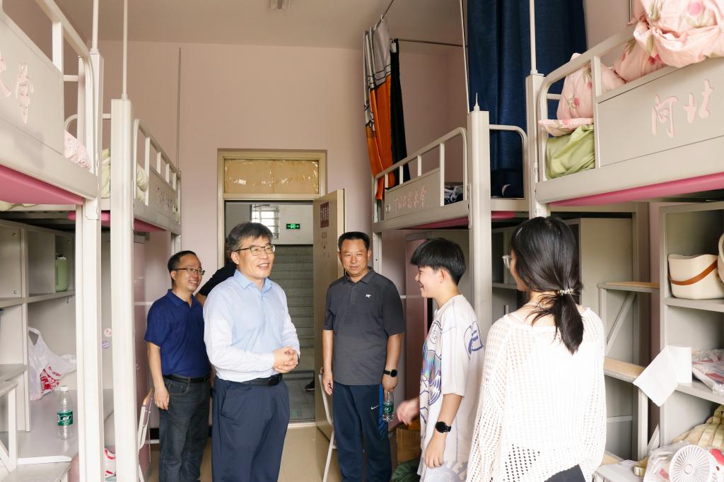 在学生公寓和学生食堂,于树江与报到新生、家长亲切交谈,欢迎新生同学们来到河北工程大学求学,勉励大家要积极适应全新的学习和生活环境,珍惜大学时光、好好学习,积极参与体育锻炼,增强体质,做德智体美劳全面发展的时代新人。他认真听取了家长们的意见和建议,并表示,感谢家长们对学校工作的关注和支持,请家长放心,学校会千方百计地创造良好的学习生活条件,让学生能够学得安心、住得舒心、吃得放心。