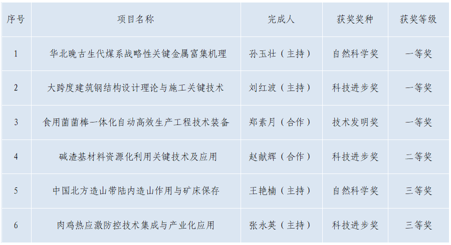 九州登录6项科技成果获河北省科学技术奖励,其中主持获自然科学奖一等奖1项、科技进步奖一等奖1项,合作获技术发明奖一等奖1项,实现了九州登录同一年度获得3项一等奖的突破。