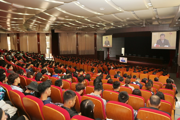 4月30日上午,纪念五四运动100周年大会在人民大会堂举行,校党委理论学习中心组成员,全体处、科级干部,马克思主义学院教师,专职辅导员,学生代表等500余人在五教报告厅集中观看了大会现场直播,认真学习习近平总书记在大会上发表的重要讲话精神。