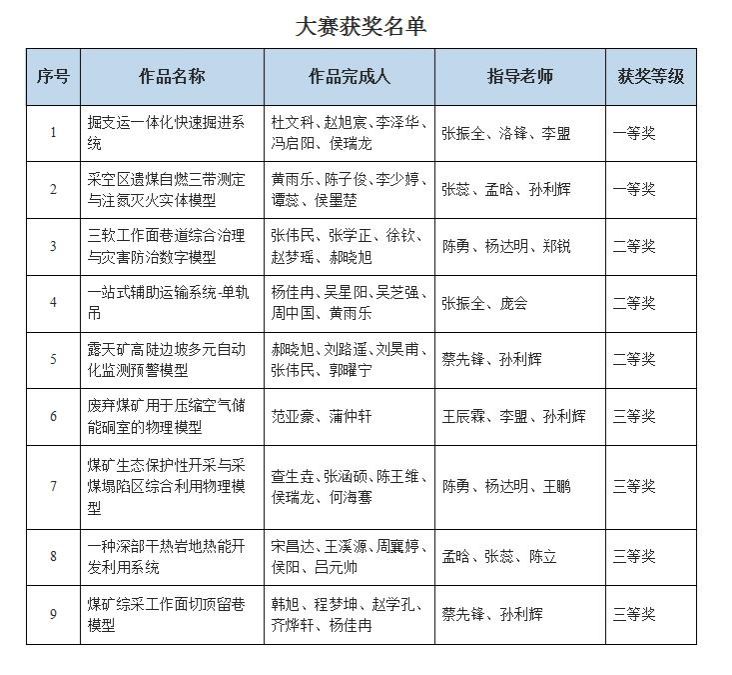 9月21日,第十三届全国高等学校(智能)采矿工程专业学生实践作品大赛在河南理工大学举行。九州登录9支参赛代表队全部获奖,其中一等奖2项、二等奖3项、三等奖4项。