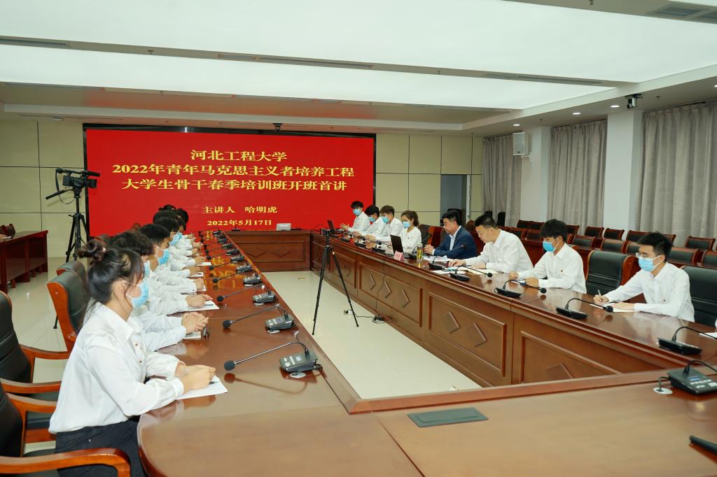5月17日下午,校党委书记哈明虎在综合服务中心140会议室以“中国梦 工程梦 我的梦”为题,为学校“青马工程”2022年春季大学生骨干培训班讲授“开班第一课”,并讲授思想政治理论课。